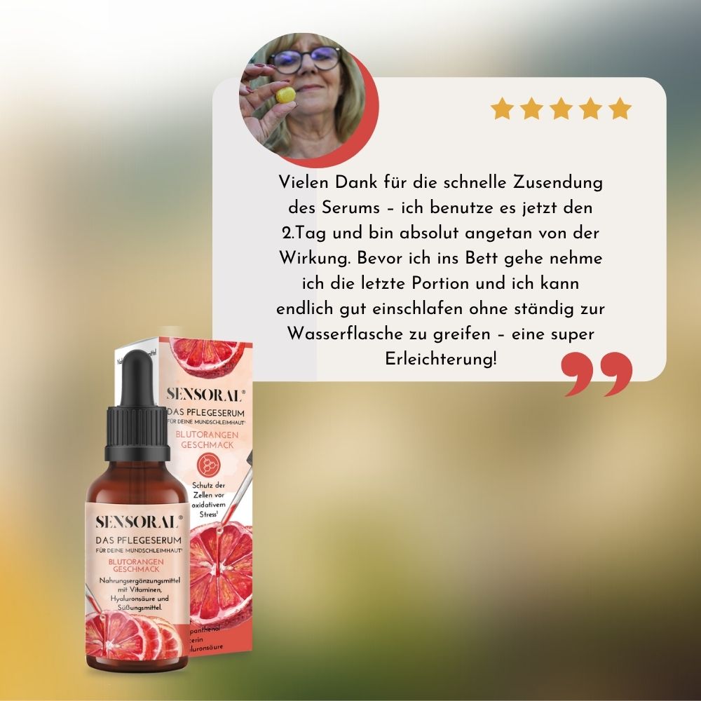 Schluss mit Mundtrockenheit! Unser Sensoral Pflegeserum versorgt deine Mundschleimhaut sofort mit Feuchtigkeit: